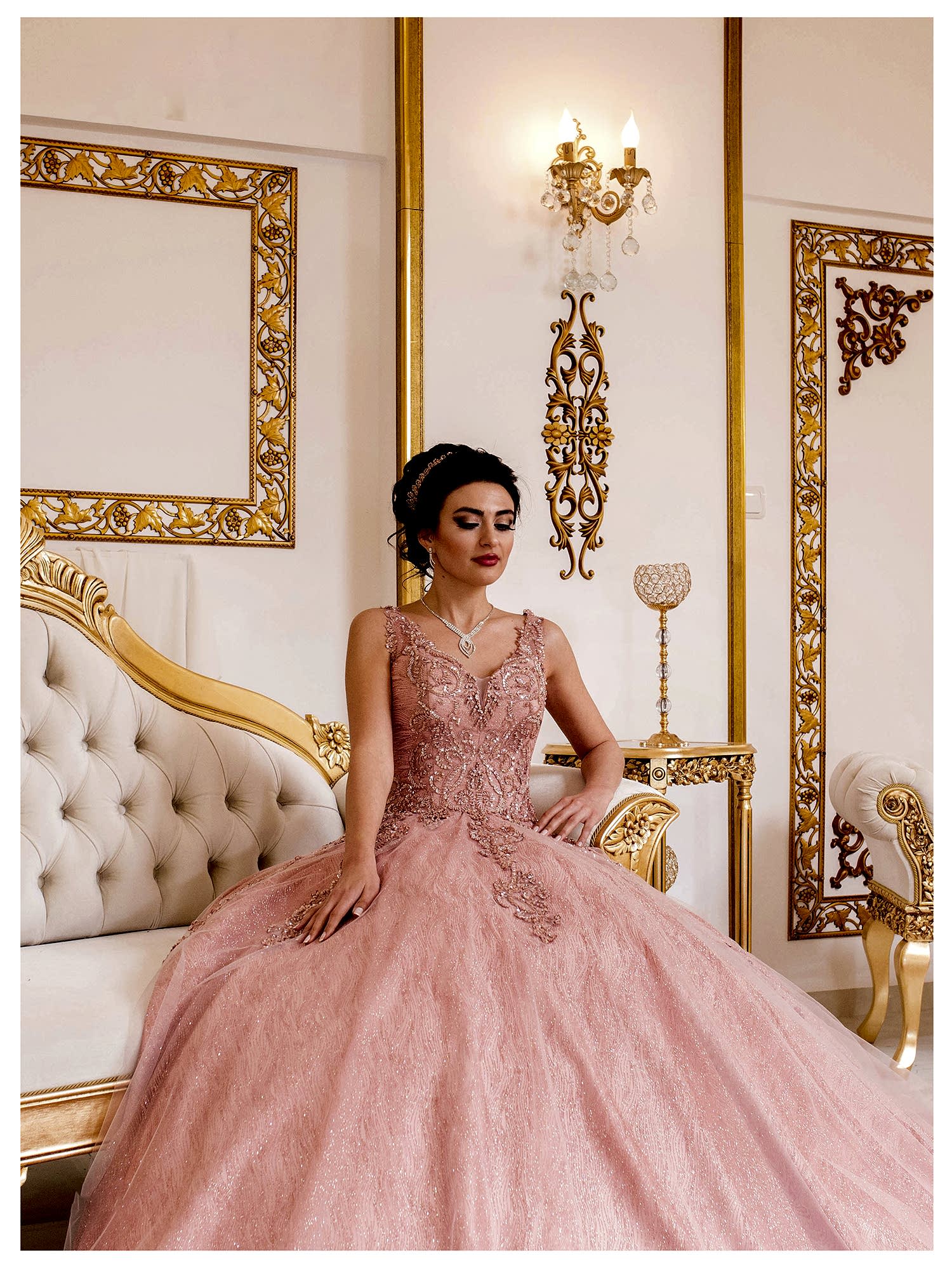 Askılı V Yaka Pembe Prenses Nişanlık